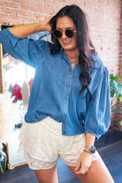 Your new go-to denim top is here. Our Denim Button Puff Sleeve Blouse gives you that effortless “put together” vibe with a soft denim wash, feminine puff sleeves, and an easy button-front you can wear tucked, half-tucked, or open as a lightweight layer.