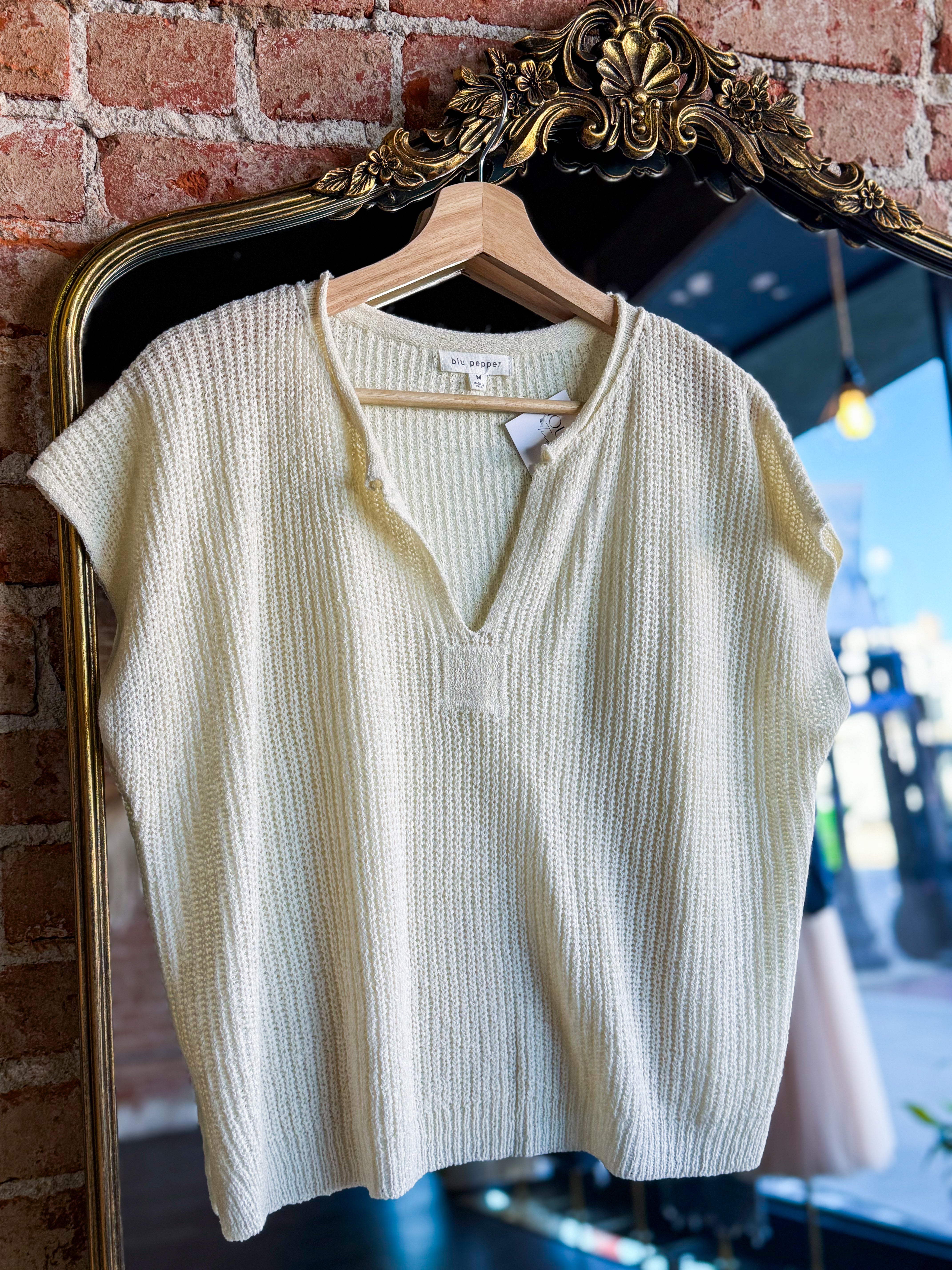 Soft, breathable, and effortlessly polished. Our Cream Lightweight Split Neck Sleeveless Sweater is the perfect knit for desk-to-date nights and easy layering under blazers or denim jackets.