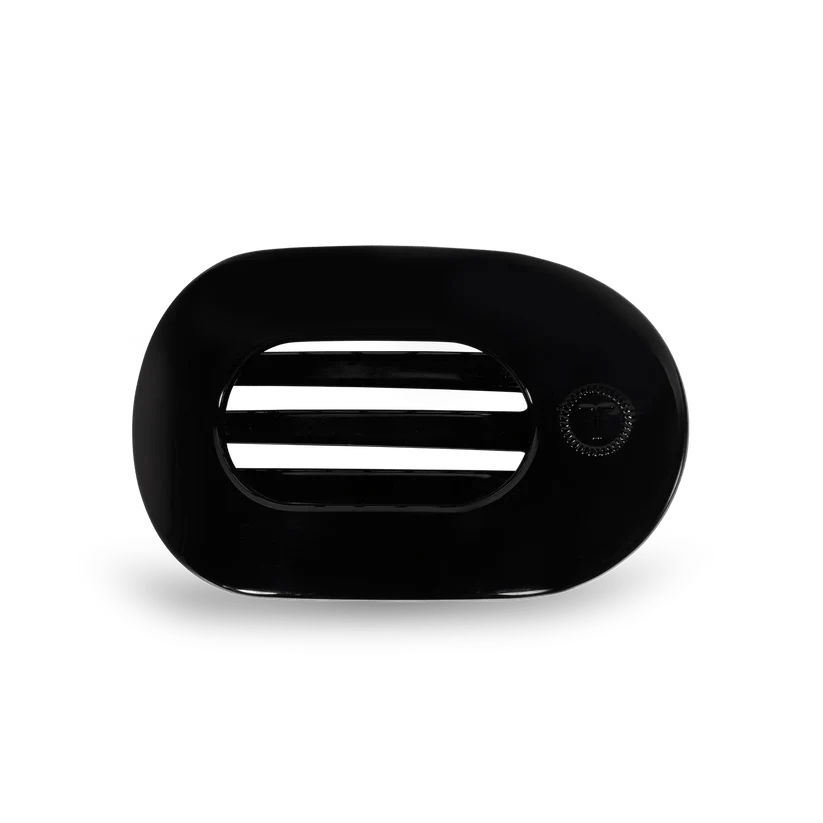 Say hello to your new everyday essential—the TELETIES Flat Round Clip in Jet Black. Designed with a comfortable flat-back silhouette, this clip lets you lay down, lean back, or move through your day without the bulk of a traditional hair clip. Its quilted finish adds a touch of elevated style, while the bendable teeth give you that perfect hold—secure yet gentle.