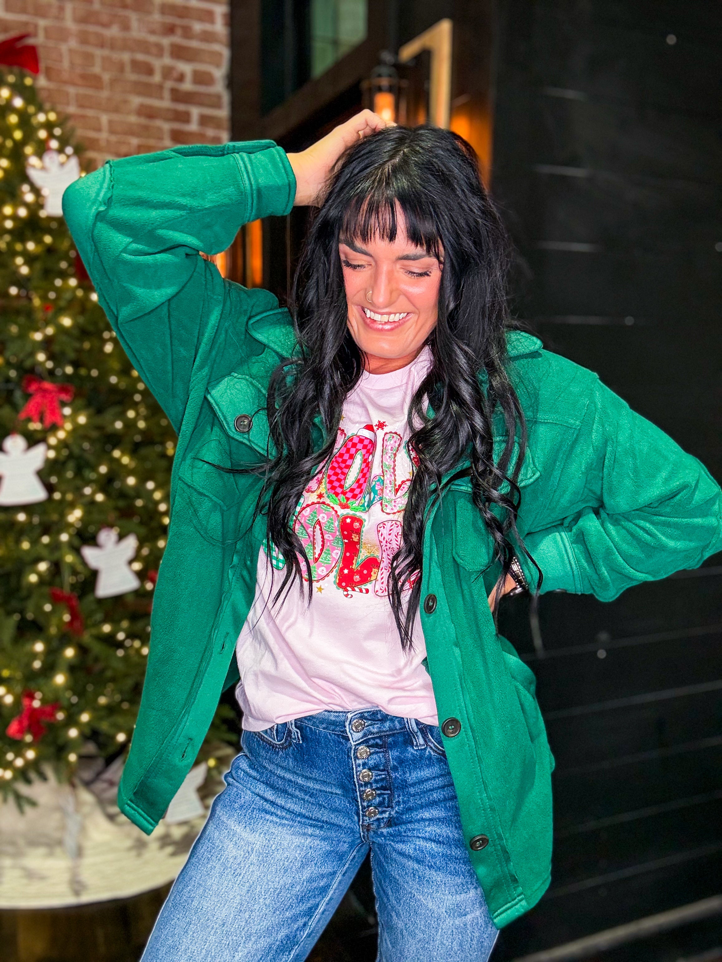 Your grab-and-go layer for chilly mornings, stadium nights, and coffee runs. This oversized fleece shacket delivers that easy, lived-in look with just-right structure—made to throw on over tees, sweaters, or hoodies all season long.
