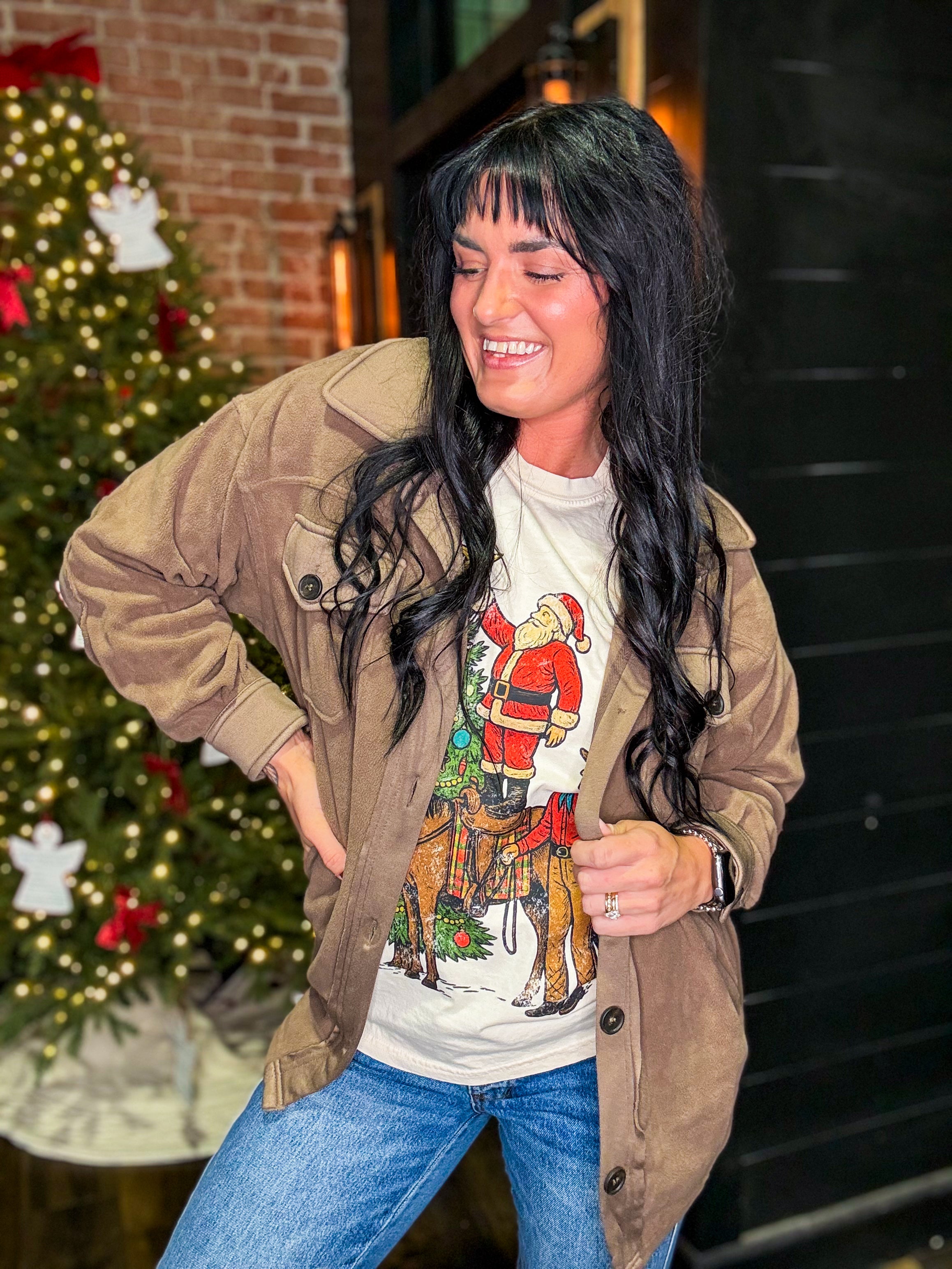 Your grab-and-go layer for chilly mornings, stadium nights, and coffee runs. This oversized fleece shacket delivers that easy, lived-in look with just-right structure—made to throw on over tees, sweaters, or hoodies all season long.