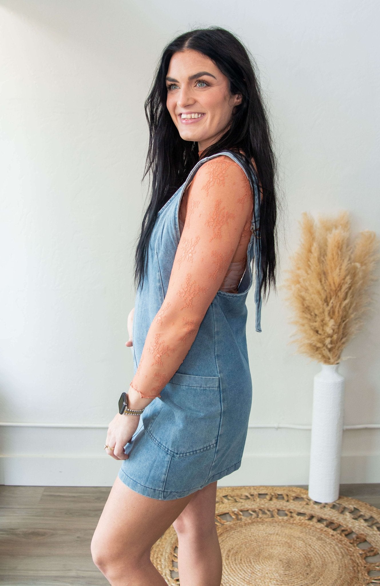 Elevate your layering game with our Sheer Lace Long Sleeve Top. This delicate piece features intricate lace detailing, perfect for adding a touch of elegance to any outfit. The sheer fabric makes it ideal for layering under overalls, jackets, or dresses, creating a soft, romantic look. Whether you're dressing up for a night out or adding a feminine touch to casual wear, this versatile top is a must-have for effortlessly chic layering.